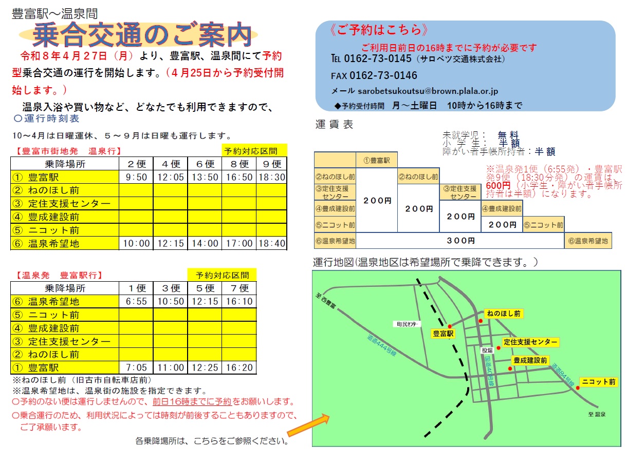 (※豊富駅から温泉間の予約受付開始は、令和8年4月25日(土)より開始)