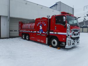 ・前水槽車はマニュアルトランスミッションでしたが水龍はセミオートマチックトランスミッションとなっています。水槽容量は10000Lと同じです。水龍は小型動力ポンプ以外にセルプラポンプを積載しており、より多くの水を短時間に放水することが可能となっております。車両ライト、投光器等は、ハロゲンランプからLEDに変わり、夜間走行や活動時により鮮明な状態で活動をすることができます。