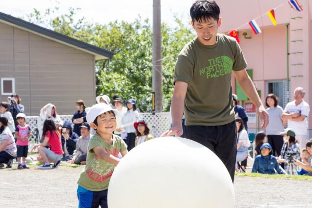 「大玉ころがし」「デカパンおやこ」などの親子種目では、親子笑顔でゴールを目指しました。