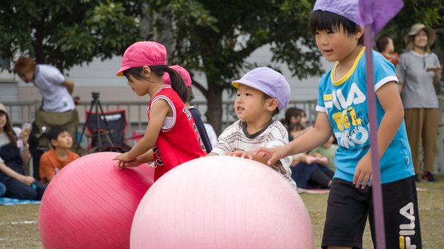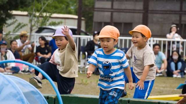 園児たちはつなひきや大玉ころがし、チャレンジレースなど様々な競技を果敢に挑み、みんなと協力して最後まで精いっぱい取り組みました。競技が終わった後には、がんばった証として先生たちから園児全員にぴかぴかの金メダルが授与され、園児たちは金メダルに負けないくらい眩しい笑顔を浮かべていました。