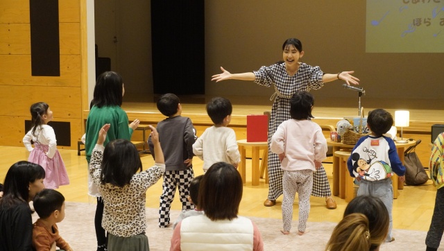 11月2日(土)ふらっと★きたにて、道内を拠点に活動する絵本作家・イラストレーターそらさんによる「絵本作家そらさんの 読み聞かせ会」が開催され、親子連れや地域の方約60名が来場しました。からだを動かして楽しむ歌あそびや、映像と音楽を合わせた自作絵本の読み聞かせなどがおこなわれ、来場者らは素敵なお話の世界を楽しみました。